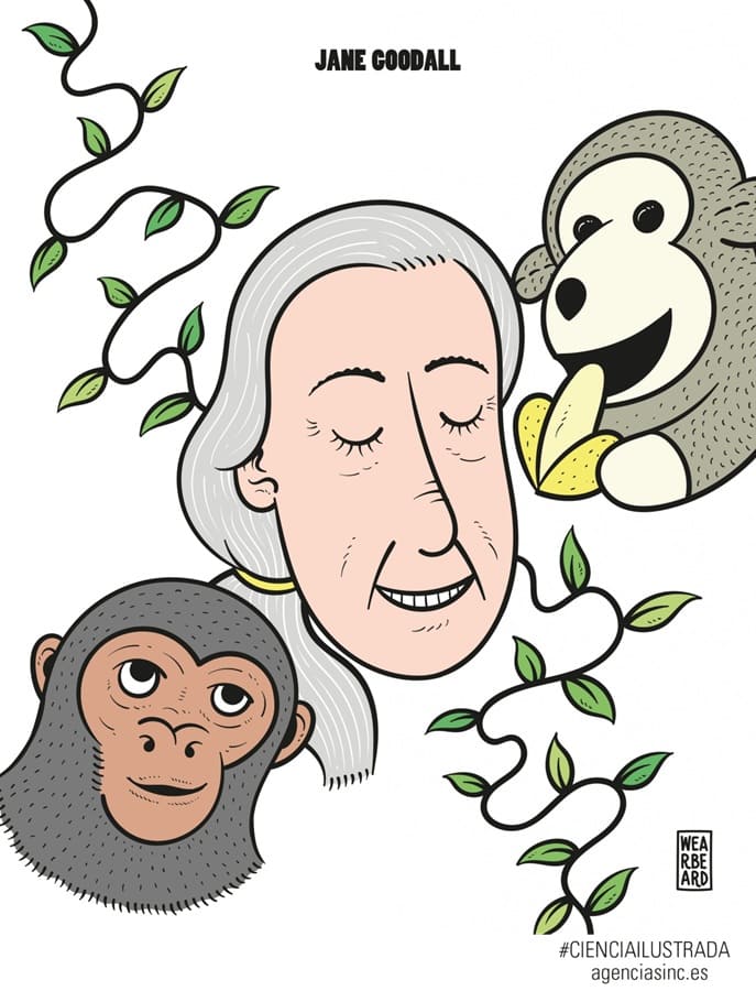 Desde la agencia SINC, el ilustrador Curro Oñate le ha dedicado un homenaje a Jane Goodall.