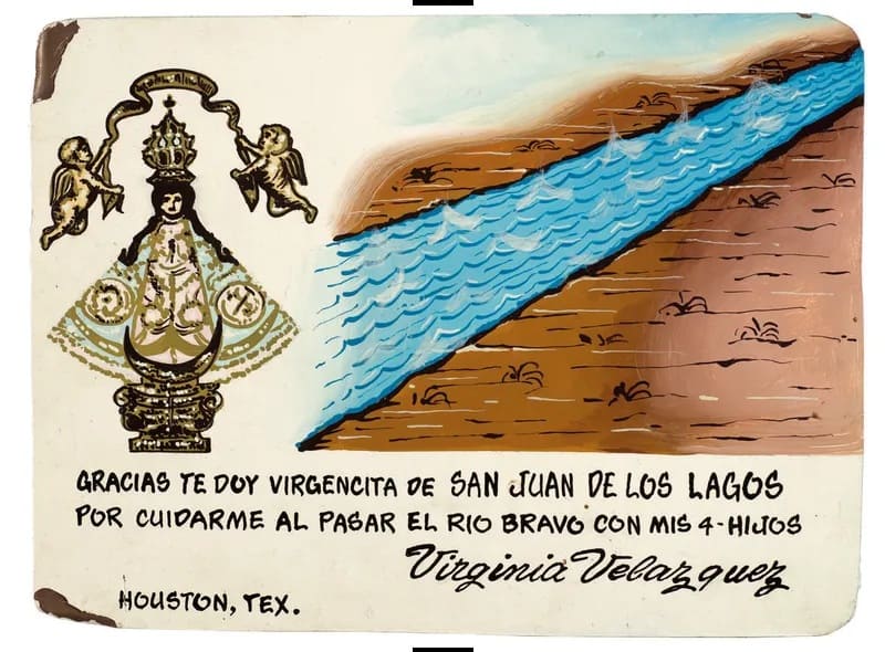 “Uno de los proyectos en los que trabajé con Jorge Durand fue ‘Milagros en la frontera’. A los dos nos interesaba el arte popular mexicano, así que viajamos al santuario de la Virgen de San Juan de Los Lagos, en los Altos de Jalisco, para ver los retablos que cubren todas las paredes. Cualquier cosa que le pueda pasar a un ser humano acaba ahí expuesta, en una de esas pinturas que dan gracias a la Virgen por un milagro otorgado o un favor recibido. Descubrimos que muchas de ellas tenían que ver con experiencias de la migración a Estados Unidos, así que decidimos crear una colección y reunimos unos 60 retablos, que se expusieron por primera vez en la Ciudad de México. Fue parte de nuestro intento de permitir que los inmigrantes contaran sus propias historias. Cuando Jorge y yo nos jubilamos, dejamos la colección al Museo de Arte de la Universidad de Princeton, que ahora la expone dentro del ala dedicada al arte latinoamericano. Uno de los vigilantes de sala nos dijo que normalmente la gente entra y sale rápidamente de la mayoría de las galerías. Pero, en esa, entran y tardan mucho en salir”. ![]()