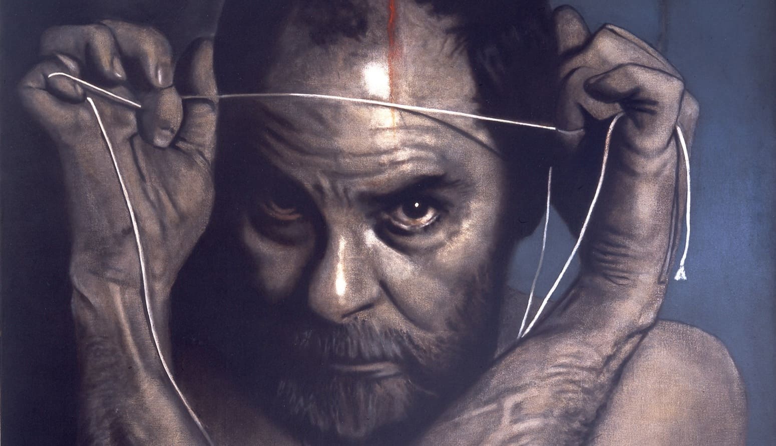 En lo tocante a su actitud artística acerca de la llamada realidad tangible, ésta es violenta, rebelde, testimonial y con una feliz combinación entre lo vital y lo mórbido. La iconografía a la que este artista apela es rica y extensa; en lo tocante a lo humano, si bien recurre a desnudos y a la representación de órganos sexuales femeninos y masculinos, cabe señalar que aun cuando no exacerba el carácter simbólico de algunos de los elementos que utiliza, tampoco desdeña la función comunicativa que tienen, entre otros, el rostro —asunto al que dedicó su exposición individual en el Museo del Palacio de Bellas Artes, en 2000, de la cual fui curador— como revelación parcial e instantánea, aunque de suma utilidad, de las personas. O el ojo —órgano del que se ha ocupado en una extensa serie correspondiente a la etapa temprana de su carrera— como símbolo de la percepción intelectual y, además, de la sensible. O, asimismo, el cráneo como contenedor del pensamiento y, a la vez, como símbolo tanto de nuestra condición mortal como de nuestra capacidad para trascender la muerte misma, pues los cráneos sobreviven, por así decirlo, a quienes les pertenecieron en vida.