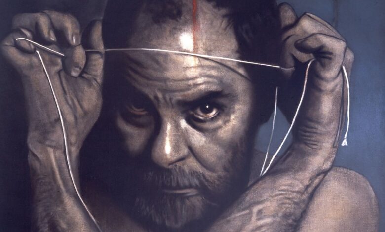 En lo tocante a su actitud artística acerca de la llamada realidad tangible, ésta es violenta, rebelde, testimonial y con una feliz combinación entre lo vital y lo mórbido. La iconografía a la que este artista apela es rica y extensa; en lo tocante a lo humano, si bien recurre a desnudos y a la representación de órganos sexuales femeninos y masculinos, cabe señalar que aun cuando no exacerba el carácter simbólico de algunos de los elementos que utiliza, tampoco desdeña la función comunicativa que tienen, entre otros, el rostro —asunto al que dedicó su exposición individual en el Museo del Palacio de Bellas Artes, en 2000, de la cual fui curador— como revelación parcial e instantánea, aunque de suma utilidad, de las personas. O el ojo —órgano del que se ha ocupado en una extensa serie correspondiente a la etapa temprana de su carrera— como símbolo de la percepción intelectual y, además, de la sensible. O, asimismo, el cráneo como contenedor del pensamiento y, a la vez, como símbolo tanto de nuestra condición mortal como de nuestra capacidad para trascender la muerte misma, pues los cráneos sobreviven, por así decirlo, a quienes les pertenecieron en vida.