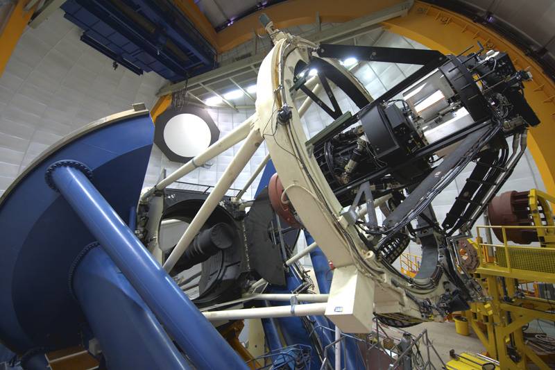 La colaboración DES construyó la cámara digital DECam, de 570 megapíxeles y alta sensibilidad, y la instaló en el telescopio Víctor M. Blanco de 4 metros del Observatorio Interamericano Cerro Tololo, en los Andes chilenos. / Reidar Hahn, Fermilab