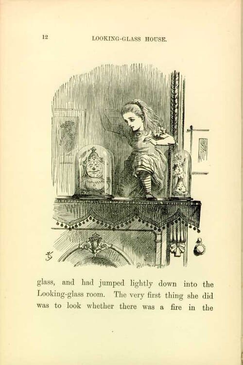 Página de A través del espejo y lo que Alicia encontró allí (1871). John Tenniel.