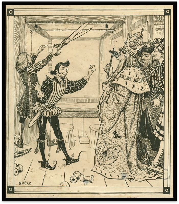 “Hubo en otros tiempos un Gran Duque al que le gustaban tanto los vestidos nuevos que gastaba todo su dinero en ropas —leemos en la versión del argentino Wieck—. Tanto cuanto revistaba a sus tropas como cuando concurría al teatro o salía de paseo, su objeto era lucir sus nuevos vestidos. Se cambiaba de ropas varias veces por día, y era tan natural decir: ‘El Gran Duque se halla en el guardarropa’, como se dice de un rey: ‘Está en la Sala de Consejo’. La capital del ducado era una ciudad ruidosa y alegre, por la que pasaban constantemente gran cantidad de forasteros; pero un día llegaron también dos embaucadores que se decían tejedores y afirmaban conocer el método para tejer la tela más maravillosa del mundo. No sólo los colores y el dibujo de esta fantástica tela eran sumamente hermosos, sino que los vestidos que se confeccionaban con ella poseían una maravillosa virtud: eran invisibles para todo el que no supiera desempeñar correctamente su oficio o para quienes fueran demasiado brutos”.