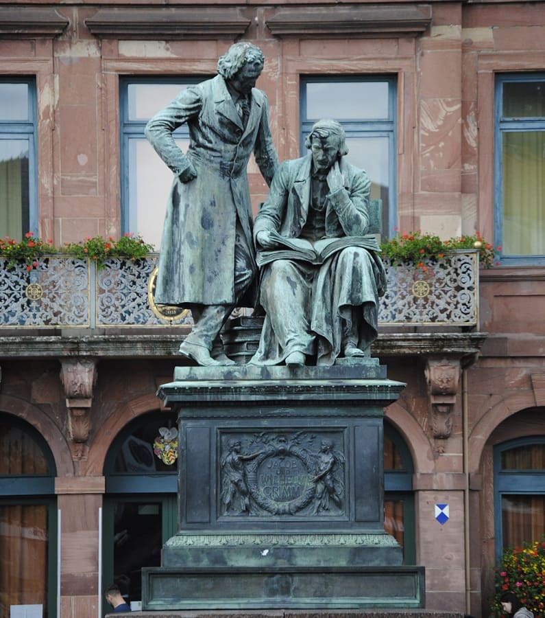 Nada queda ya del lugar donde nacieron los Grimm, en Hanau, Alemania: “Al igual que la mayoría de las casas que alguna vez habitaron —nos contaba O’Neill—, la de Hanau fue destruida por los bombardeos durante la Segunda Guerra Mundial. Una estatua de bronce de los hermanos se levanta frente al Rathaus, o Palacio de Gobierno, mostrando a dos hombres de cabello largo y levita, absortos en la lectura, su gran placer”.